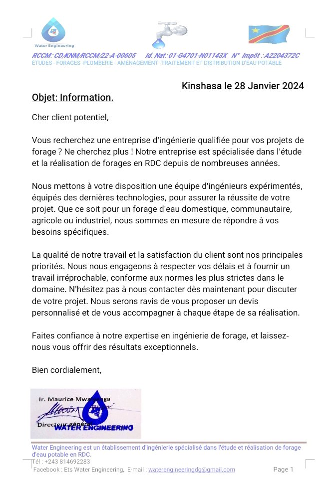 Vous recherchez une entreprise d’ingénierie qualifiée pour vos projets de forage ? Ne cherchez plus ! Notre entreprise est spécialisée dans l’étude et la réalisation de forages en RDC depuis de nombreuses années.