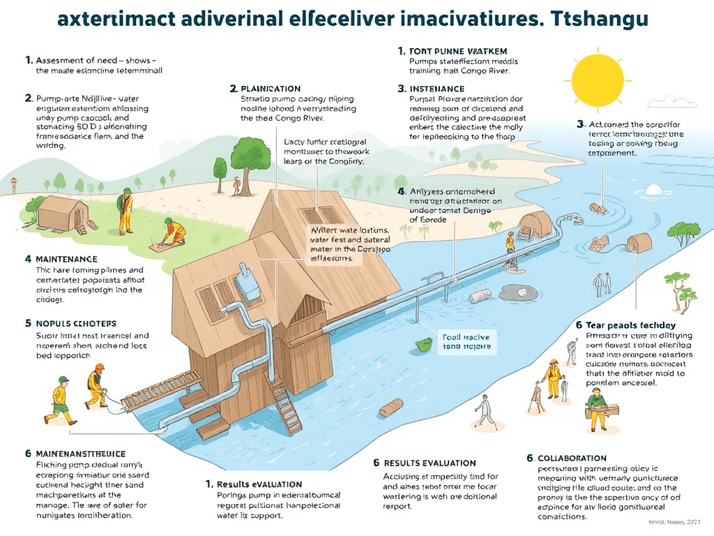 L’identification des points stratégiques le long de la rivière Ndjili pour l’installation des pompes est primordiale. Ces emplacements doivent maximiser l’efficacité du système d’évacuation.
